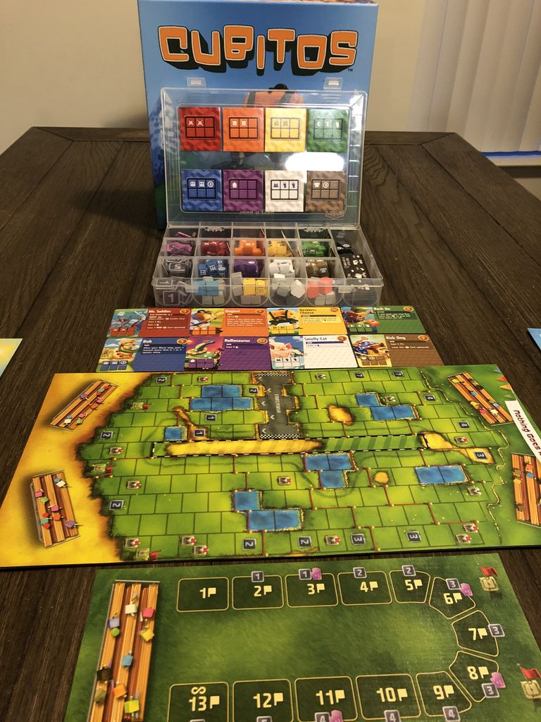 🕋🕋🕋Trong Cubitos, người chơi sẽ tham gia vào giải đua Cube Cup hàng năm, một cuộc đua của chiến thuật và cả vận may để xác định Nhà vô địch trong Thế giới Hình hộp Cubitos. Mỗi người chơi có một tuyển thủ trên đường đua và một đội hỗ trợ. Mỗi lượt, bạn sẽ đổ xí ngầu và sử dụng kết quả của chúng để di chuyển dọc theo đường đua, mua thêm xí ngầu mới và sử dụng các năng lực đặc biệt của những viên xí ngầu này - nhưng hãy cẩn thận: đừng dựa dẫm quá nhiều vào vận may, kẻo bạn sẽ về chót trong cuộc đua này đấy!